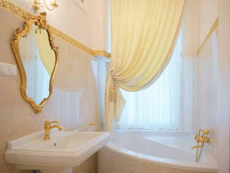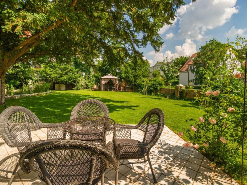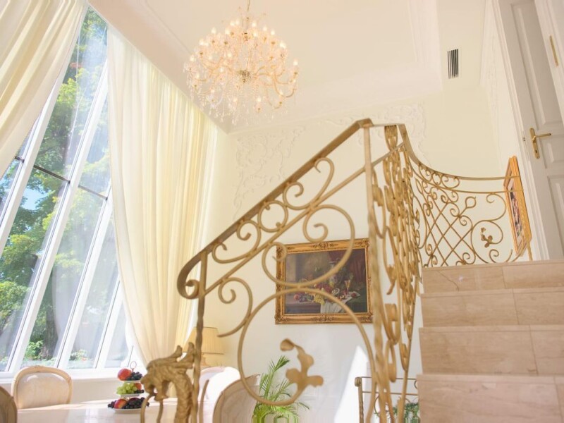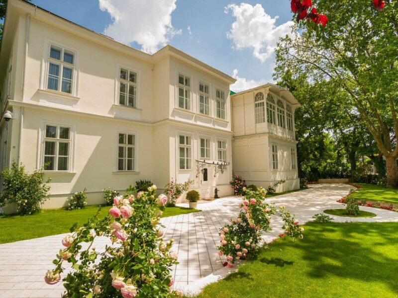 Historic 19th century villa located in the center of the historic spa town of Baden. It was completely renovated in 2014/2015, with particular attention paid to the precise restoration of architecturally valuable elements (plaster, columns). This building has been completely renovated, with the exception of the foundation walls and parts of the roof frame, this work was completed in early 2015. The villa has three floors. The first floor consists of a large living room with an open fireplace, a winter garden, which is openly connected to the living room, kitchen, bright dining room with a large window and a door to the summer terrace, a guest apartment (living room, bedroom, bathroom with toilet), a room that fits perfectly as a work room and has a separate entrance that can be used to receive business partners, another room, two additional baths and a wardrobe. Two stairs lead to the upper floor. The second floor consists of a living room with an open fireplace, a master bedroom with an adjoining conservatory with beautiful garden views, a bathroom and dressing room, two bedrooms, two bathrooms, a third conservatory and a guest apartment. consists of a living room, bedroom, bathroom and toilet. On the upper floor there is another room that can be used as a multipurpose room or as a playroom, bath and toilet. Old trees and a koi pond can be found in the garden. In total, the villa consists of 6 en-suite bedrooms, 2 large and 2 small living rooms, a dining room, several dressing rooms, two more rooms, a bathroom and a toilet and 3 conservatories. Equipment • Underfloor heating in all rooms • Wine cellar (cellar completely dry) • 2 open fireplaces • 2 stairs • Pellet heating • 3 parking spaces • 24-hour outdoor video surveillance • Ventilation system, individually adjustable • Hot tub in the master bedroom bathroom • Italian furniture production (made to order).