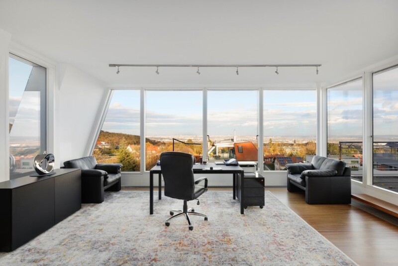 Fantastic modern villa with panoramic Vienna views! Villa benefits indoor swimming pool, panoramic glazing, garage, elevator! Perfect location in prestigious Gießhübl within villas surrounding. Living area: 380 m2 Number of rooms: 6 Number of bathrooms: 5 Number of bathrooms: 7 Terrace area: 120 m2 Number of terraces: 2 Garden area: 1.184 m2 Garage area: 130 m2 Number of parking spaces: 5 - Spacious living/dining room with open fireplace (100 m2) - Fully equipped designer kitchen - Glass elevator to all 4 floors - Outdoor and indoor heated swimming pool - Spa area - Large multi-purpose party room with stage/home cinema Purchase price: 4.750.000€.