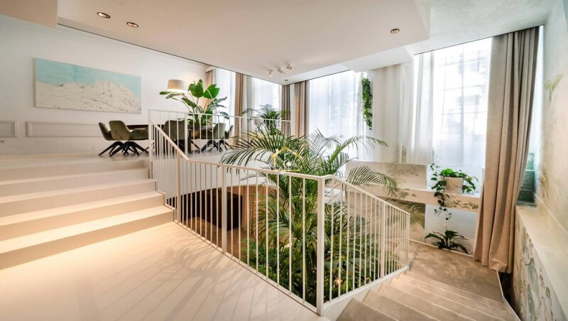 Living and working under one roof made easy! 3 rooms/ fully equipped / luxurious/ up to 5 m ceiling height / guest toilet / bathtub & shower / 160 m2 Transforming Spaces - Urban Jungle" is an innovative architectural project by Joachim Thaler that transforms an empty commercial space into an exclusive residential landscape in the city center. Thaler integrates architecture, interior design and art to create multifunctional uses and convert the former commercial space into a high-quality living space. The space is organized according to the principle of a "house within a house" with a ceiling height of up to 5 meters and is designed to be multifunctional, inspired by yacht building techniques. The design incorporates nature to promote well-being and works with artists such as Gio Bressana and Patrick Rampelotto, who artistically enrich and redefine the space through their works. Room layout: Ground floor: kitchen, living room, guest toilet First floor: comfort zone and office Basement: bedroom, wellness, toilet, work area.