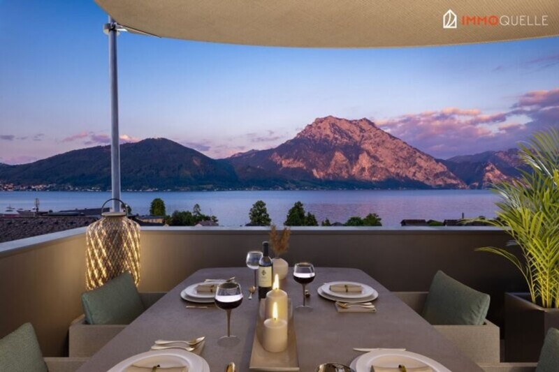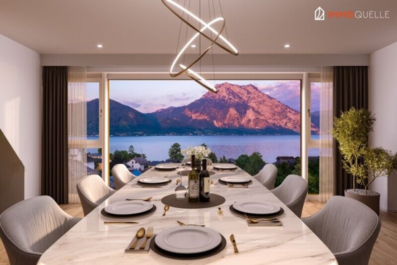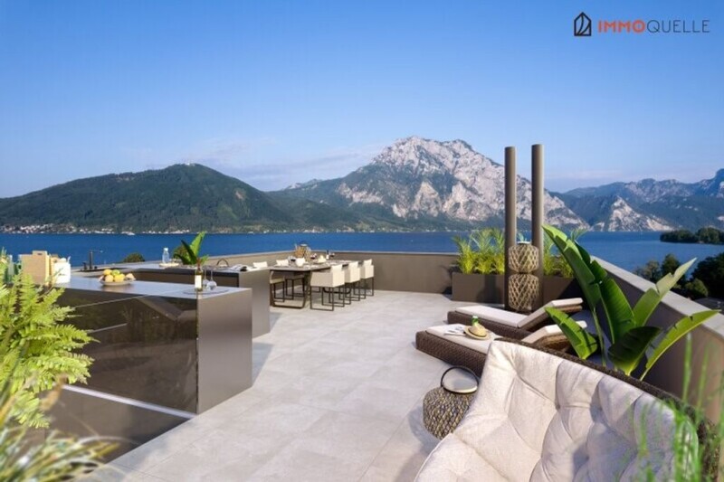 Stylish elegance, with incomparable lake views, a 360-degree roof terrace, an impressive atrium, ... THE FIRST AND LAST OF ITS KIND - This unique penthouse is in an incomparable location in the middle of the enchanting community of Altmünster am Traunsee. From here you can fully enjoy the direct view of the lake and the majestic Traunstein. Through the truly impressive atrium you reach the inviting roof terrace, where a fascinating 360-degree panorama awaits you. This breathtaking view gives you a feeling of limitless freedom. With a living space of 265.26 square meters, this unique penthouse opportunity has everything a stylish family, a wealthy entrepreneur or an affluent investor could desire. In addition, the property is spanned by a large roof terrace (83.80 square meters) and a green roof (25.72 square meters). Based on a time-honored and historic building, after many years of planning, it is being transformed, millimeter by millimeter, into a unique gem. Parts of the building are being extensively renovated, while others are being lovingly expanded and given artistic details. You can easily enter your refuge via the staircase or the elevator, which is available exclusively for the residents of the penthouse. As soon as you step over the threshold, the glass atrium with an olive tree and a stunning view of the Traunstein catches your eye - and makes the tranquility of this ensemble literally tangible. The spacious living-dining area spreads out directly in front of you with a direct view of Lake Traunsee and shows how one room flows seamlessly into the next. Attached is a modern and open kitchen-living room, where you automatically start dreaming while cooking with a view over the roofs and the church tower. Gently embedded in the room is an inviting lounge on the opposite side. With the cozy crackling of the oven, you can enjoy the evening hours here even on cold nights - while your gaze wanders out of the window over the roofs and towards the picturesque lake. Standing in the middle of the apartment, you turn in a circle and slowly take in the many details and the generous cut - like a wine whose aromas only come into their own after a few seconds. Maybe only then do you notice the spacious, walk-in cloakroom and the guest toilet next to the entrance door? Or the fascinating interior design? Or you can see how the incomparable atrium leads over two floors to the roof terrace - a functional connecting piece and an opulent eye-catcher at the same time. To the left of the atrium you go step by step into the private area of the penthouse. This is followed by one of the two individual bedrooms and an elegant bathroom, contrasting with gray tiles. An hour in the free-standing bathtub should be enough to completely relax and arrive in the here and now. The intelligent positioning between the first and second bedrooms increases the privacy of the rooms, although the path to the bathroom is still only a few steps long. Planned as a retreat for the parents, you now enter the showpiece, the master bedroom. It is equipped with a large core room and its own walk-in closet, which also offers enough space for large and unusual wardrobes. Also connected is the private bathroom and a separate toilet, which are entirely available to you. As a buyer, you have the option of integrating wellness into your daily life - with a sauna specially set up for you and, if desired, an additional oven. Architecturally and visually, the room ultimately leads to a spacious corner balcony, which harmoniously closes off the master bedroom and leaves nothing to be desired. We would like to point out that all information in this exposé was created to the best of our knowledge and belief and we will not accept any liability for typographical errors or errors. Passing this offer on to third parties without express permission will result in compensation. Disclaimer for 3D visualization Our offer contains images of a 3D visualization from a third party. IMMOVENCE GmbH assumes no liability for the correctness, topicality or quality of the images provided. These images were created solely to support our customers' imagination and creativity. Any economic or family closeness is pointed out. IMMOQUELLE Discover the world of real estate with our IMMOQUELLE guide, podcast and YouTube channel! We answer all questions about buying, selling and renting real estate in our articles, podcast episodes and video content. Whether you are a beginner or an expert, you will find all the information you need to successfully implement your real estate projects. Don't miss the opportunity to turn your dreams into reality - follow us now on our blog, podcast and YouTube channel! We would like to point out that there is a close family or economic relationship between the agent and the client. The agent acts as a double broker. Infrastructure / Distances Health Doctor <500m Pharmacy <500m Hospital <2,500m Children & Schools School <500m Kindergarten <500m Local supplies Supermarket <500m Bakery <500m Shopping center <3,500m Other Bank <500m ATM <500m Post Office <500m Police <3,000m Traffic Bus <500m tram <3,000m train station <1,500m motorway connection <7,000m airport <10,000m details distance as the crow flies / source: OpenStreetMap Altmünster am Traunsee - where quality of life and enjoyment of nature form a perfect unity. Located in the middle of the enchanting Salzkammergut, Altmünster offers a first-class location in Austria. This idyllic community is surrounded by breathtaking nature and is just a short drive from larger cities such as Gmunden and Vöcklabruck. Altmünster is easily accessible both by car and by public transport. The community is easily accessible via well-developed motorways and country roads. The nearest international airports are Linz and Salzburg Airport, which can be reached in about an hour by car.