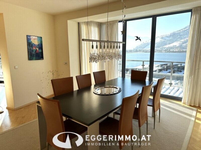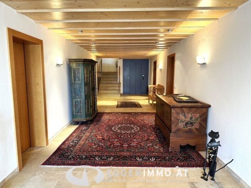 For sale is this charming single-family house with a passenger lift, which was built on a 1132m² plot in 1995. The house is in a well-kept, clean condition. The large windows flood almost the entire house with light. Location: In an extremely quiet, attractive south-facing slope in Erlberg / Zell am See, at 750m above sea level, you will find this property with a cozy living environment and versatile leisure options, in an absolutely quiet location. An unobstructed view of Lake Zell, the Kitzsteinhorn and the Hohe Tauern make this property unique. Layout: Ground floor: To the left and right of the 3-story house there are 2 separate garages. In the middle is the spacious entrance to the house. The long hallway leads to the lift with which you can reach all floors. On the ground floor there is the tank, technical and boiler room, 3 large storage / storage rooms that provide sufficient storage space, a wine cellar and the technical room for the lift. The first floor can be reached via the staircase or the elevator. 1st floor: On this floor there is the entrance hall and the 4 separate bedrooms, all of which are equipped with a bathroom and toilet. One bedroom has a walk-in closet and a large bathroom with a bathtub. All rooms lead to the terrace and the garden, from which you can enjoy a sensational, unobstructed view of the Pinzgau mountains and Lake Zell. On this floor there is also a storage room that is used as a laundry room. 2nd floor: On this floor there is the inviting living-dining area, which can be reached through a double glass door. The bright kitchen has a separate entrance. All rooms have direct access to the large, sunny balcony. On this floor there is the entrance hall, a toilet and a storage room / laundry room. From the living room and the kitchen you can access the long, sunny balcony of around 35m². In the living room there is a cozy, wood-paneled room that is used as a library or TV room. There is also an open fireplace. Attic: On this floor there is another bedroom with bathroom and balcony, a spacious office or playroom for children, a toilet, the wellness room and the technical room for the swimming pool. The approx. 41m² wellness room has a sauna, a steam bath, a whirlpool and a shower. Heating: Underfloor heating, the house is heated with an oil central heating system (4000l tank) Outdoor area: An external staircase leads to the berth and swimming pool, which is located above the house. There is also a rustic garden shed. Other: not a second home This special house is ideal for a large family! Take advantage of this opportunity and let yourself be inspired by this unique living comfort in one of the most beautiful areas of Austria. Viewing: A viewing can be arranged at any time by arrangement. I am happy to provide you with further information and details about this property. Due to the obligation to provide proof to the seller, only inquiries with complete information (name, telephone number, address) can be answered. I look forward to hearing from you or by email. Commission: The above information is based on information and documents from the owner. For the sake of clarity, we would like to state that in the event of a deal being concluded with you or a third party named by you, our fee (according to the fee regulations for real estate agents, Federal Law Gazette 262 and 297/1996) is 3% of the sales price plus statutory VAT. The agent acts as a double agent. In an extremely quiet south-facing slope in Erlberg / Zell am See, at 750m above sea level, you will find this property in an absolutely quiet location. An unobstructed view of Lake Zell, the Kitzsteinhorn and the Hohe Tauern make this property unique.