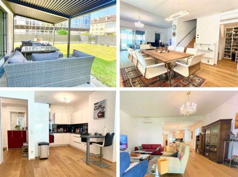 Wonderful modern townhouse in Vienna 9th district for sale! Great option with private garden within the busy city, all infrastructure is all around! Total area: 218 m2 Number of rooms: 4 Number of bedrooms: 3 Number of bathrooms: 2 Number of bathrooms: 3 Garden: about 104m2 Terrace: about 18m2 - Floor heating - Climate control - Large sunny garden with terrace and barbecue - Optionally, you can purchase an underground parking space in the house - For the tenant of the house free use of the fitness area, children's room, party room Purchase price: 1.295.000€.