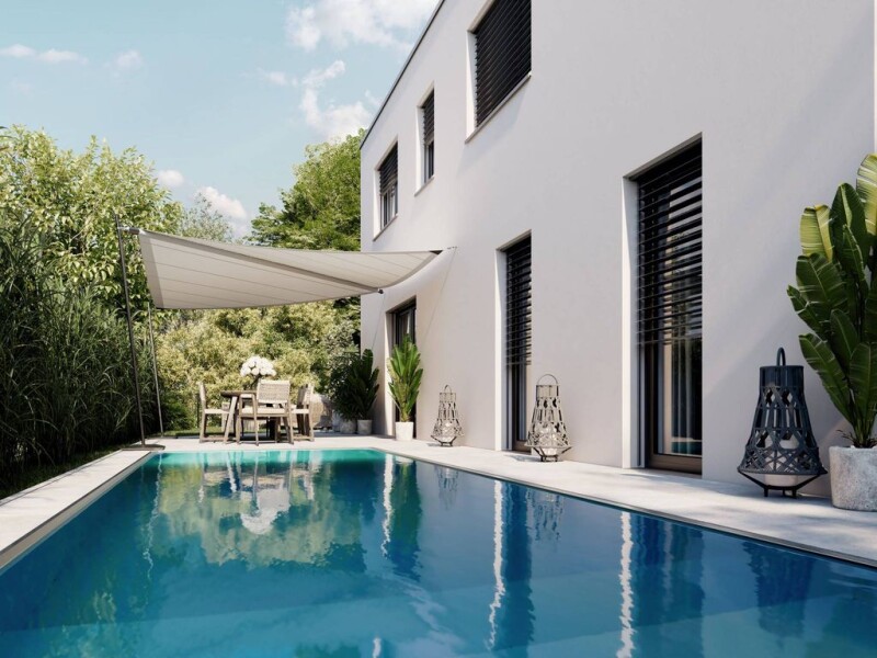 "Urban luxury meets purist zeitgeist" In a very popular and sought-after district of Salzburg, in the middle of Alt-Liefering, directly on the idyllic Mühlbach, we are building a modern single-family home in contemporary architectural language and high standards of solid and proven construction quality including "added value" equipment! * 143 m² living space (ground floor + first floor) * Approx. 400 m² plot of land in real ownership * Private garden with sun terrace on the ground floor * 12 m² balcony terrace on the upper floor * Private garage parking space in the underground garage with direct access to the house * 1 carport parking space and 1 free parking space * Pool optionally available on special request! * Proven solid construction * Facade with full thermal insulation * Bright aluminum/plastic windows with 3-pane thermal insulation glazing * White interior doors with wooden frames * Blind boxes including electrically operated Venetian blinds/external blinds on all window elements including patio or balcony doors * Timelessly beautiful floor and wall coverings * Central heating connection in the apartment building (pellets) * Underfloor heating * Photovoltaic system * Solid and extensive sanitary facilities * Special requests possible! * Move-in by arrangement - commission-free directly from the developer! Note: Access is via Hafnermühlweg and the new construction project to be built (9 condominiums) of VIKTORIA WOHNBAU GMBH, or underground via the underground car park.