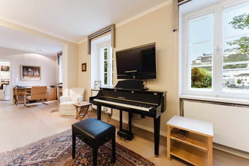 Located in the middle of Salzburg's old town, between the Salzach and Steingasse, this historic apartment in an old building is approx. 180 m² in size and offers a unique view of Hohensalzburg Fortress and Salzburg's old town. A passenger elevator takes you comfortably and, above all, barrier-free to your new domicile. Upon entering this extraordinary apartment, you first come to the spacious and bright hallway, which leads you directly to the heart of the apartment, the open and light-flooded living/dining area with direct access to the balcony. Adjacent to this is the study/music room, which offers you a range of possibilities for use. Here, too, the view of the historic old town of Salzburg is inspiring. The path continues to the master bedroom with a separate balcony and to another room, which is ideal as a guest room or could also be used as a walk-in closet, and the spacious daylight bathroom with a double sink, free-standing bathtub, rain shower and sauna. Another room, a cloakroom, a spacious storage room, a guest toilet and two parking spaces complete this real estate offer. Experience a superior living environment within walking distance of Salzburg's old town – where tradition and modernity are perfectly combined! For further questions or to arrange a viewing, Mr. Tobias Kolitscher is happy to be of service at the mobile number +43 676 930 80 07. Additional costs of up to 10% depending on the purchase price, the costs of drawing up the contract, the costs of securing the purchase price in the land registry and the family relationship. All the data provided has been carefully collected. Figures may be rounded or estimated. The client is responsible for the accuracy and completeness of the information provided.The historic center of the city of Salzburg is a cultural and architectural highlight and classified as a UNESCO World Heritage site. In addition, the world-famous Old Town boasts a particularly attractive infrastructure and a diverse and first-class gastronomy. Stroll on Mozart's footsteps through the charming old town alleys and take advantage of the exquisite shopping in the unique ambiance of the city of Salzburg.