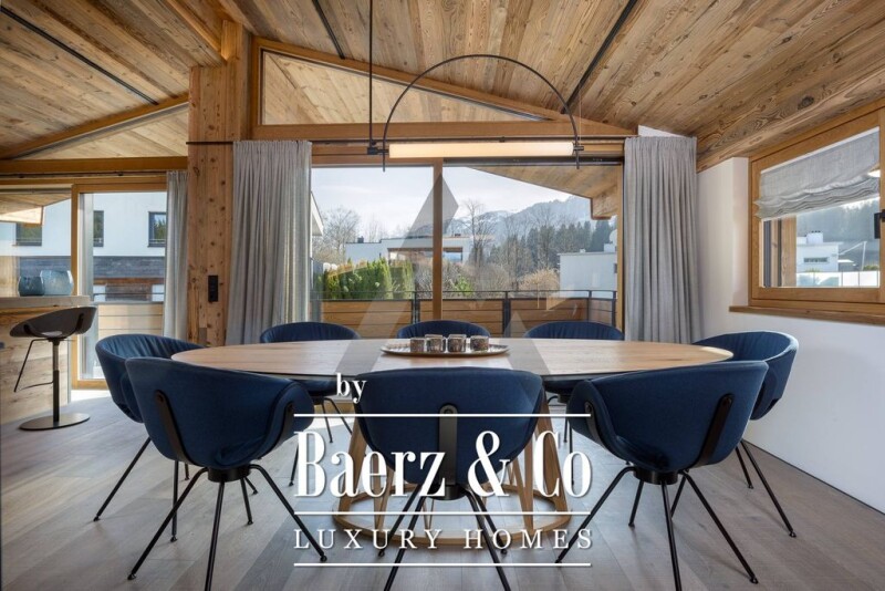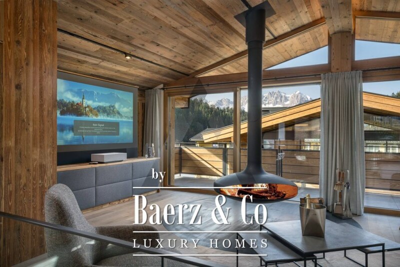 These luxury chalets have been completed and fully furnished in January 2024. Each chalet extends over three floors and will feature three bedrooms with en-suite bathrooms, a spa area, a private elevator, an open plan living/dining and cooking area with reclaimed wood ceiling beams, an open fireplace, and sunny terraces with superb mountain views. Each chalet comes with two parking spaces and a sports equipment storage room in the spacious shared underground garage. Chalet Top 1 - Kaiser - approx. 246 m² Living space approx. 230 m² Usable area approx. 16 m² Terrace/balcony approx. 69 m² Garden approx. 113 m² 3 bedrooms | 4 bathrooms | sauna | gym Price € 3.990,000,- Chalet Top 2 - Hahnenkamm - approx. 234 m² Living area approx. 225 m² Usable area approx. 9 m² Terrace/balcony approx. 81 m² Garden approx. 127 m² 3 bedrooms | 4 bathrooms | sauna | gym Price € 4.590,000,- Chalet Top 3 - Horn - 247 m² Living space approx. 230 m² Usable area approx. 17 m² Terrace/balcony approx. 79 m² Garden approx. 141 m² 3 bedrooms | 4 bathrooms | sauna | gym Price € 4.790,000,- Chalet Top 4 - Sonnberg - approx. 244 m² Living space approx. 230 m² Usable area approx. 14 m² Terrace/balcony approx. 77 m² Garden approx. 179 m² 3 bedrooms | 4 bathrooms | sauna | gym Price € 4.890,000,- © Visualisierungen: www.visual-image.at Highlights of this luxurious chalet include: - exposed reclaimed wood ceiling beams - Focus fireplace - sauna & gym - high-end woodwork & furniture by a renowned local interior decorator - modern built-in kitchen with Miele appliances - elegant bathrooms with Dornbracht fixtures - BUS system - motorized blinds - geothermal heating - soft cooling - photovoltaic - sports equipment storage - laundry room with washer/dryer - garden with mowing robot; partly with sprinklers - large decks - elevator - 2 underground parking spaces - 2 shared outdoor parking spaces - etc. Four new chalets have been built in a south-facing location at the foot of the Kitzbüheler Horn, on the outskirts of Kitzbühel, with magnificent views of the Wilder Kaiser. Kitzbühel nestles between Kitzbüheler Horn and Hahnenkamm, and is situated an hour’s drive from Innsbruck (90k), Salzburg (80K), and Munich (120K). As the Alps’ sports capital, Kitzbühel combines old traditions with a modern lifestyle. The historic center has great restaurants, small cafes, trendy bars & more.