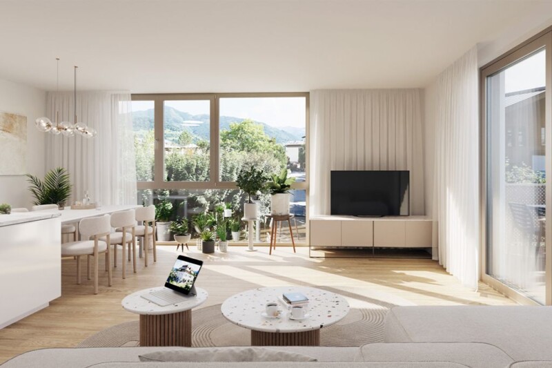 Mountain and lake – so close! In the middle of Zell am See, nestled in the surrounding mountains and with a view of the clear Lake Zell, a construction project is being developed that offers its residents an extraordinary quality of life and the highest living standards. Zell am See's first theater was once located there – now an extraordinary dream home with high-quality furnishings is being built there – exclusive living without compromise. THE GARDEN APARTMENT The spacious terrace of around 41 m² offers a wonderful view of the greenery and awakens the longing for your own garden – a little paradise right on your doorstep. All rooms lead directly onto the terrace, inviting you to linger and enjoy the peace and quiet. Enjoy, linger and relax – all this becomes reality when you enter the adjoining open-plan living room and let the sparkling Lake Zell take effect on you in all its splendor from the terrace. In a few minutes' walk to the lake, to the old town of Zell am See or to the mountain slopes for skiing, hiking or biking. You can't get more than that! The construction progress currently allows a visit to the construction site to get a good impression of the views and the spatial concept. Ms. Martina Dorner-Bauer is available to answer any further questions or to arrange viewing appointments at any time on her mobile number +43 676 930 80 30. Additional costs of up to 10% depending on the purchase price, the drafting of the contract, the entry of the purchase price in the land register and the family relationship. All data has been collected with care. Figures may be rounded or estimated. The client is responsible for the accuracy and completeness. We do not accept any liability for errors on various websites/portals that may result from faulty data transmission. Please note that the photos shown are visualizations.Mountain, lake & glacier – whether you are looking for a skiing holiday in winter or a family vacation in summer. At an altitude of 757 meters above sea level, idyllically embedded in the mountain landscape of the Pinzgau and in close proximity to Lake Zell and the Kitzsteinhorn Glacier, the town of Zell am See offers everything your heart desires. The small town of Zell am See in the Salzburg region is a climatic health resort. In addition to the air, the water of Lake Zell is particularly pure and is of drinking water quality. In the Zell am See-Kaprun region, you can be active all year round: Skiing and winter sports have made Zell am See and the Kitzsteinhorn famous worldwide: three ski resorts, breathtaking mountains, great scenery and a glacier will keep you warm in the cold season. The festival city of Salzburg is a good hour's drive away, Munich is just under 2.5 hours away and the sports town of Kitzbühel can be reached in just 45 minutes via the Pass Thurn.
