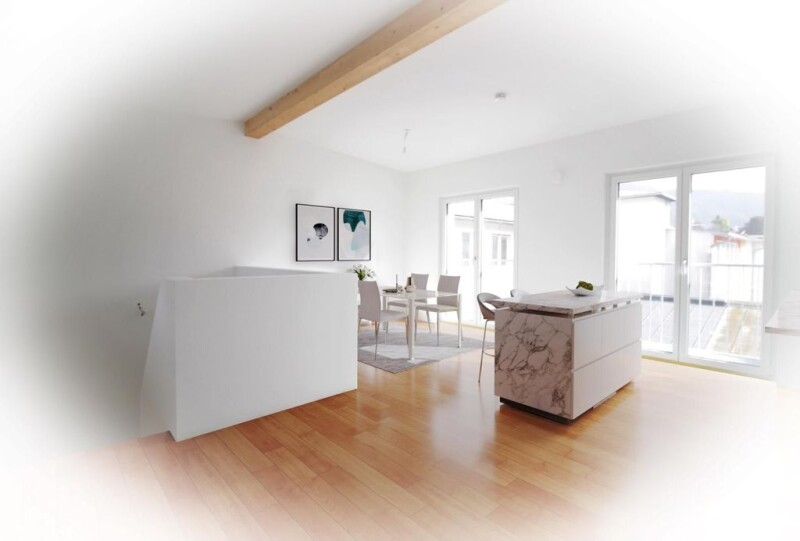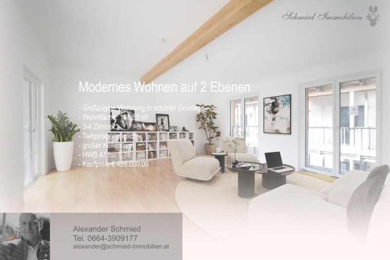 Lindau residential park On the site of the former "Loden Frey business park", three residential buildings A, B and C have been built on Lindau Street, on the western edge. These residential buildings have a shared, car-free access zone directly above the garage deck. All houses and levels are accessible via elevators. Each apartment has been assigned spacious terraces or open spaces to offer residents the appropriate amount of space and privacy. The apartment on offer is located in section A on the ground floor/upper floor. It has 3-4 rooms, a spacious terrace/loggia and a large basement room. 1 parking space can be purchased in the underground car park. Information in accordance with legal requirements: Heating requirement: 43.0 kWh/(m²a) Total energy efficiency factor: 0.49 Final energy requirement: kWh/(m²·a).