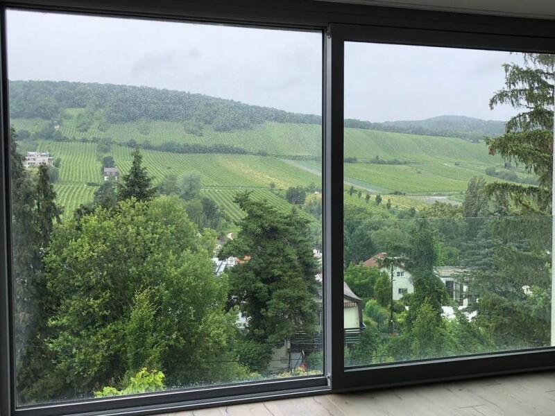 The villa is located in one of the most beautiful areas of Vienna - the 19th district - in the town of Neustift am Walde in the vineyards on the slopes of the hills of the Vienna Forest. Neustift am Walde is a wine region where you can enjoy young homemade wines in the cozy restaurants in the area every fall. The picturesque views of this area attract you for walks. The route through the vineyards is especially pleasant, with a rest in the restaurants - Heurigen- which welcome guests. The villas are built in a modern style, using glass, which makes the rooms unusually bright and airy. This is an ideal place for a family - a picturesque green area, while one of the most prestigious international schools is located nearby. An ideal place combining the idyll of village life and the advantages of the Austrian capital.