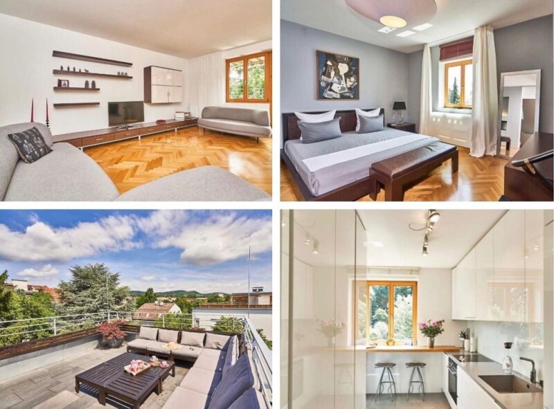 Duplex penthouse of the best location in the 19th district of Vienna! Most prestigious and green area of the city! Total area: 106 m2 Number of rooms: 3 Number of bedrooms: 2 Number of bathrooms: 2 Number of bathrooms: 2 Terrace: 28 m2 Balcony: 8m2 - Roof terrace with panoramic view of the Vienna Woods - Fully furnished apartment - Fireplace in the living room - Two parking spaces in the underground garage can be purchased separately Purchase price: 994.000€ Price per parking space: 35.000€.