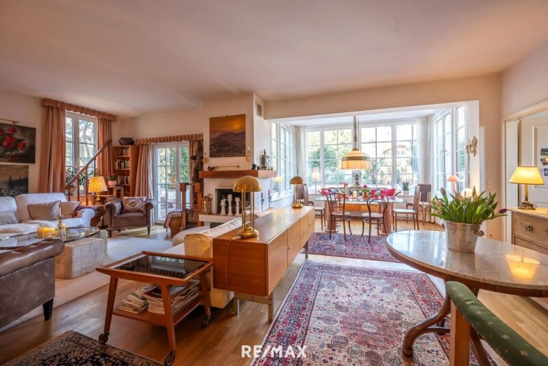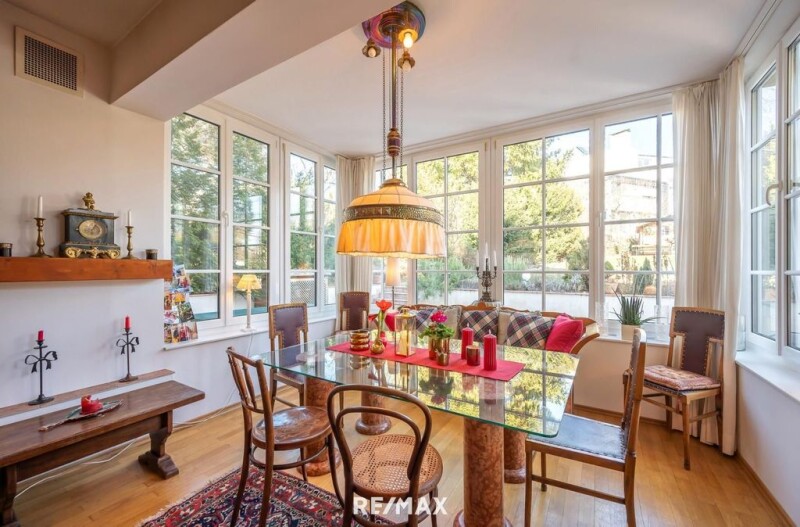 Elegant detached house in a quiet location for the family and more! This detached house offers you and your family a comfortable home in a quiet location. It is also suitable for a large family, because with 12 rooms, more than one generation can find space here. Due to the layout, a private area for a nanny or domestic worker would also be possible. Or of course the option of living and working under one roof! The house impresses with its generous room layout and the high-quality equipment that leaves nothing to be desired. Large windows and verandas let in a lot of light. The rooms are spacious and higher than in the usual new buildings. The ground floor has an exit from both the living room and the kitchen to the large terrace on the garden side and the beautifully landscaped garden. It is the heart of the house. Here you will find the spacious living room, the kitchen, a bathroom, a toilet and 1 bedroom and a dressing room as well as the library. On the first floor are the children's areas, each with a bedroom and a living room, as well as a bathroom and an extra toilet. The verandas are particularly pretty, one facing north and the other facing south. The attic has two further living areas, also consisting of a bedroom and living room and a bathroom with toilet. The basement has various storage rooms, the sauna with relaxation room, showers, toilet, a large living cellar or sports room and the boiler room. Heating is with gas, and there is a solar system for hot water. There is also enough space for your vehicles here. The garage is spacious for 5 cars. There is either a separate room for bicycles or holders on the wall. The house was built in 2006 and completed in January 2008. It is heated with gas. The windows are triple-glazed wood/aluminum windows, the floors in the living rooms are oak parquet, and the other rooms are tiled. The garden is trapezoidal and slightly sloping. There is a small garden house at the end of the garden. The approx. 65m² terrace is simply fantastic. This is the perfect place to spend the summer! The owner currently still lives in this beautiful house and would like to hand it over a maximum of 6 months after the purchase contract. I would be happy to tell you more details during a personal viewing appointment. Highlights of the house * Total living space: approx. 700m² * Plot size: approx. 766 m² * Year of construction: 2006 * Rooms: 12 * Living spaces higher than in a typical new building (2.75 or 2.55) * Bathrooms: 6 bathrooms, 6 toilets, * Kitchen: Modern fitted kitchen with high-quality appliances in country house style * Garden: Well-kept garden with approx. 65 m² terrace * Garage: Space for 5 cars * Heating: Underfloor heating throughout the house * Solar system for hot water preparation * Cozy fireplace in the living room * Sauna with showers and relaxation room in the basement Location The house is in a popular residential area that impresses with its peace and proximity to nature. The entrance to the Lainzer Tiergarten is easily accessible on foot, and walks in the popular Hörndlwald forest begin at the end of the alley. At the same time, all important facilities for daily needs, such as schools, kindergartens, shops and doctors (the Hietzing hospital is also very close), can be reached in just a few minutes by car. (The nearest grocery store is a 12-minute walk away). Public transport is available via bus line 56B. The next station can be reached on foot in just a few minutes. Information We ask for your understanding that before we send you the exposé, we require confirmation of immediate action and clarification of the right of withdrawal in accordance with the FAGG (Distance and Away-to-Door Selling Act). After your written request, you will receive the relevant documents from us, which we ask you to confirm by clicking on "Open offer". We would then be happy to arrange an appointment. The obligation to pay a brokerage commission only arises for you if the brokerage is successful and is only due when the brokered transaction becomes legally effective. By virtue of existing business practice, we can act as a double agent. The information is based on information provided by the owner and/or third parties and is therefore without guarantee. Subject to change! _______________________________________________________________________________________________________ Final energy requirement: kWh/(m²·a).