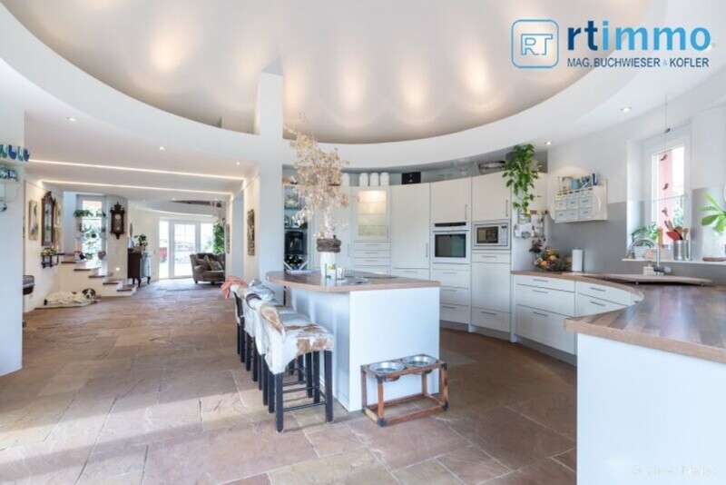 HIGH-QUALITY ARCHITECT'S VILLA WITH TERRACE and NATURAL POND ON OWN LAND HIGHLIGHTS Beautiful gardens with natural pond unique architecture noble Indian sandstone floor in Roman bond underfloor heating air conditioning in the bedroom exceptional fitted kitchen several terraces, orangery LOCATION This architect's villa with a large garden is in a quiet location near the beautiful Hirschstetten bathing pond, which you can reach in no time on foot. The Hirschstetten flower gardens are also in the immediate vicinity. DESCRIPTION This extraordinary house was built in 2004 in solid construction and is in perfect condition. The large property has an idyllic garden with several terraces, a natural pond and an orangery. The house is not directly on the street and access is via a driveway area, on which a carport can also be installed. The defining detail of the house are the round main rooms with their two conical roofs, which create a particularly pleasant feeling of space and the lighting design further emphasizes the uniqueness of the interior design. The house offers a very open, spacious living, dining and kitchen area on the ground floor, from which you can see the garden from anywhere. The entire ground floor is equipped with a fine Indian sandstone floor, which in combination with the underfloor heating provides pleasant warmth or cools in summer. The huge kitchen, which does everything it can, is of course also an eye-catcher. The elegant living room is particularly bright thanks to the many patio doors and so you feel very close to the garden, which is particularly enhanced by the continuous laying of the same stone floor on the terrace. There are also two bedrooms on the ground floor, both of which have direct access to the garden. A beautiful and modern wooden staircase connects the two floors. On the upper floor there is a large air-conditioned bedroom with its own terrace, a spacious bathroom with double bathtub, double sink and shower. A closet with sufficient storage space completes the perfect overall impression. The house has a basement and consists of a very large, bright room with direct access to the garden and a technical area. Everything is already prepared for a sauna. There are also preparations for an additional air conditioning system and solar system. In the beautifully landscaped garden there are lots of nice little details, such as the orangery or the private well on the grounds, the water from which is used in the house for domestic water such as the garden, toilet and washing machine. All in all, a retreat that invites you to linger. ROOM LAYOUT GROUND FLOOR: Anteroom, spacious living area and dining area, fully equipped kitchen area, 2 terraces with garden, 2 bedrooms or children's rooms, separate toilet TOP FLOOR: Bedroom with terrace exit, spacious bathroom with double bathtub, double sink, shower, closet BASEMENT: Large basement area, separate toilet with urinal, bathroom with shower, direct exit to the garden FACILITIES The anteroom, living room and kitchen have high-quality Indian sandstone floors. The high-quality bathroom has both a bathtub and a walk-in shower. Solid walnut parquet flooring has been laid in the two bedrooms on the ground floor and the bedroom on the upper floor. A fireplace in the living room ensures a particularly comfortable living environment in the cold seasons. In addition, the entire house is heated by underfloor heating. A vacuum cleaner system helps with the annoying work in the house. Terraces, orangery and much more. TRANSPORTATION Bus line 85 a is just a few meters away. By car, you can be on the A23 in just a few minutes. COSTS Purchase price: 1,349,000.00 euros 3.5% property transfer tax 1.1% registration fee approx. 1.5% contract preparation costs 3.0% + 20% VAT broker's fee Additional costs: In the case of financing, additional costs may be incurred by the bank. We would like to point out that there is a close family or business relationship between the agent and the client. The agent works as a double agent. PLEASE UNDERSTAND THAT WE CAN ONLY PROCESS FULLY COMPLETED ENQUIRIES (NAME, ZIP CODE, ADDRESS, PHONE NUMBER)! Infrastructure / Distances Health Doctor <1,500m Pharmacy <1,000m Clinic <3,000m Hospital <3,500m Children & Schools School <1,000m Kindergarten <1,000m University <3,500m High school <3,500m Local amenities Supermarket <1,000m Bakery <1,500m Shopping center <2,000m Other Bank <1,500m ATM <1,500m Post office <1,500m Police <1,500m Traffic Bus <500m Subway <1,500m Tram <1,000m Train station <1,500m Motorway connection <1,500m Information Distance as the crow flies / Source: OpenStreetMap Hirschstettner TeichConnections for sauna, solar and air conditioning available.