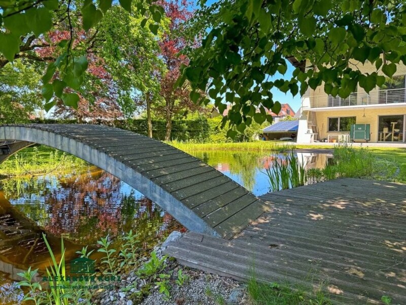 Welcome to an exclusive villa that impresses with its impressive architecture and first-class facilities. This exceptional property, located in the south of Salzburg, offers a living space of 330 m² and is located on a magnificent plot of over 4,800 m². With the old trees and the large bodies of water, which are connected by their own bridge, the property resembles a picturesque park and offers an incomparable natural experience. With a usable area of approx. 420 m², it offers plenty of space for a luxurious living experience. High-quality natural stone floors and fine solid wood parquet give the house an elegant and timeless character, generous room heights create an airy and open living feeling. The stylish fireplace in the living room not only provides cozy warmth, but is also a visual highlight. The property also includes a garage with two parking spaces, a carport and a charming garden house that offers additional storage space or space for hobbies. The spacious garden with its park-like design invites you to linger and enjoy. The large bodies of water and the bridge create an idyllic and harmonious landscape that will delight you every day. The agent works as a double agent. SalzburgPurchase costs: 3% agent fee plus 20% sales tax; 3.5% real estate transfer tax, 1.1% land registry entry costs, contract preparation costs, expenses. This offer is non-binding, subject to change and subject to interim sale. Information: Please note that due to the obligation to provide proof to the owner, we can only process inquiries with full address details. Information on data protection can be found at.
