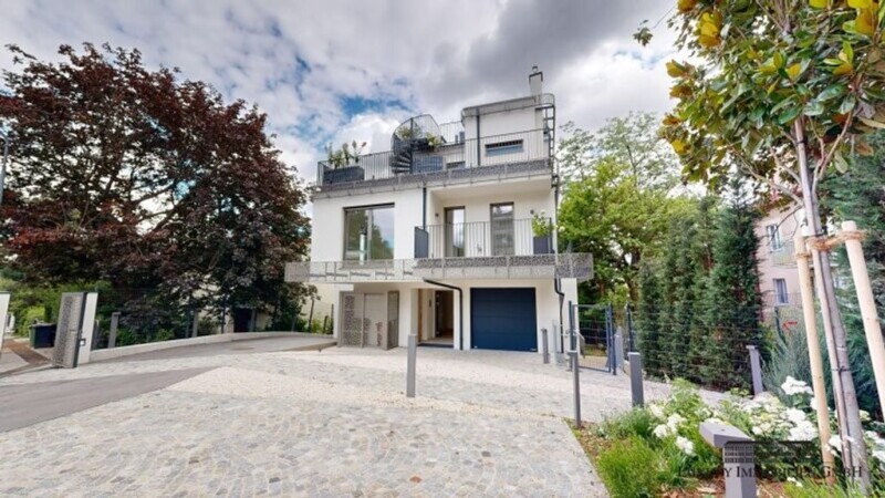 Features: This exquisite villa in the 19th district of Vienna impresses with its size - 368 sqm of elegant living space on three floors. A special feature of the house is a separate apartment with its own entrance for guests or staff, which significantly increases its functionality and attractiveness. The villa has 9 rooms, including 5 bedrooms and 2 living rooms, equipped with premium class fitted kitchens. Modern technologies such as a smart home system, an elevator and Gaggenau kitchen appliances guarantee residents maximum comfort and convenience. There are two swimming pools in the house. One is located in the courtyard, the other on the roof, and offers an exclusive recreation area with a wonderful view. There is a terrace on each floor. Here residents can enjoy open space and impressive views of the surroundings. The total area of these terraces is 82 sqm. Next to the house there is a spacious garden with an area of 180 sqm, which provides an ideal place for outdoor relaxation. The house has two garages and parking spaces for up to six cars in the courtyard. Location: The villa in Formanekgasse in the 19th district, Döbling, offers not only a beautiful living atmosphere, but also an excellent location. Here, residents enjoy the peace and comfort of the quiet neighborhood, but are still close enough to the vibrant city life. The proximity to first-class restaurants, charming cafes and boutiques along Döblinger Hauptstraße, combined with the excellent public transport connections and the proximity to health and educational facilities, makes this address the ideal place for all those looking for a quiet retreat close to the hustle and bustle of the city. The agent acts as a double broker. Infrastructure / Distances Health Doctor <500m Pharmacy <500m Clinic <1,000m Hospital <1,000m Children & Schools School <1,000m Kindergarten <500m University <1,000m High school <1,000m Local supplies Supermarket <500m Bakery <1,000m Shopping center <2,000m Other ATM <500m Bank <500m Post office <1,000m Police <1,000m Traffic Bus <500m Subway <1,500m Tram <500m Train station <1,000m Motorway connection <2,000m Information Distance as the crow flies / Source: OpenStreetMap The villa in Formanekgasse is a project by the well-known property developer Hinteregger Immobilien Group. The company, founded in 1914, attaches particular importance to design solutions, ecology and the quality of residential projects. The villa is located in the heart of Vienna's most exclusive residential district, nestled in Döbling on the hills facing the Danube, near the Hohe Warte. The residence offers views that extend over vineyards and the cityscape.