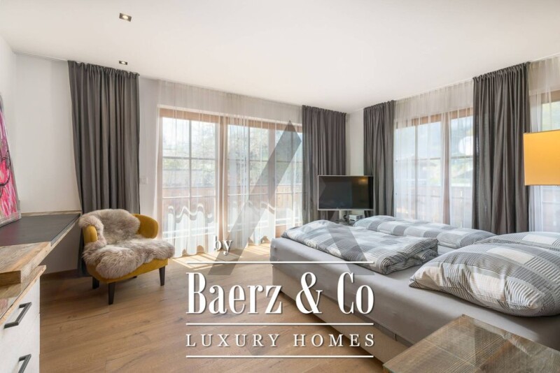 Located in a sunny top location in Kitzbühel, this top floor apartment is in a residential building that was built to a high standard and is very well maintained. The sweeping views extends from the Kitzbüheler Horn over the southern mountains to the Hahnenkamm and the Wilder Kaiser in the north. This 221 m² apartment extends over 2 floors and is furnished with high-end furniture and refined taste. The apartment entrance is on the second floor. Also on this floor are the spacious entrance hall with wardrobe, the master bedroom with dressing room and en-suite bathroom, another bedroom with en-suite bathroom, and a powder room, and a covered balcony. All bedrooms have their own private balcony. The highlight of this apartment is the over 100 m² living / dining / kitchen area with exposed ceiling beams. The high-end kitchen boasts Miele appliances and a Borah stove, and has a back kitchen with prep-area and pantry area. The dining area gives access to a west-facing balcony with great views of Kitzbühel. The living area and the fireplace room open to the wraparound balcony which offers sweeping views in all directions. The very cozy bedroom with private sauna and en-suite bathroom is accessed through the fireplace room. The unit comes with a spacious 14m² storage unit, a shared ski / bike storage room and 2 dedicated underground parking spaces. Energy Efficiency Certificate is being processed. Highlights of this penthouse maisonette include the following: - high-end built-ins - infrared cabin - sauna - gas fireplace - elegant bathrooms - exclusive furniture - exposed ceiling beams - oak flooring - wraparound balconies - elevator - alarm system - video surveillance - Gira bus system - motorized blinds and awnings - 2 underground parking spaces - regular and power outlets in the garage - shared bicycle & ski storage In sonniger Toplage von Kitzbühel am Sonnberg befindet sich diese exklusive Dachgeschoss-Maisonette mit 360 Grad Panoramablick. Die Fußgängerzone als auch die Gondelbahn zum Kitzbüheler Horn sind in wenigen Gehminuten erreichbar. Kitzbühel is the Alps’ sports capital. What makes the town so unique is its charming blend of time-honored traditions and modern lifestyles. Kitzbühel’s historic center boasts great restaurants, small cafes, trendy bars and discotheques, a casino and a movie theater, making it a place for all to enjoy. The house is superbly located for great hiking and biking tours. In the summer the pristine Schwarzsee is a popular place to relax and unwind. Kitzbühel lies nestled between the Kitzbüheler Horn and the Hahnenkamm. Innsbruck (95 km), Salzburg (80 km) and Munich (120 km) are all about an hour's drive away.