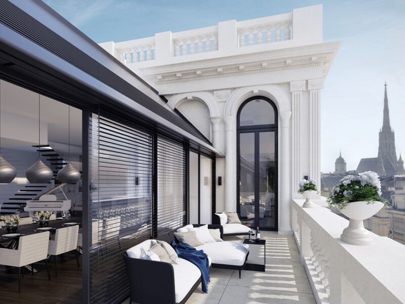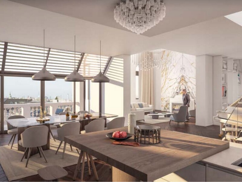 Undoubtedly, the revitalization and expansion of the Palais Schottenring Vienna will create Vienna’s most exclusive real estate project with imperial apartments on four floors. Last but not least, special attention will be paid to the new common areas designed by the international star interior designer Juan Pablo Molyneux. Studio Mollyneux, with its many years of experience with international customers, will also shape the floor plans of every apartment. For every resident and visitor, the Palais Schottenring Vienna stands out due to its elaborate and unique design already with the first step into the palace, being noticeably different from other residential buildings and setting new standards. The general facilities include a vestibule with concierge service, a 200 m2 lobby, and two exclusively equipped meeting & office rooms. Cuubuus architects and developers bring in their 20 years of experience in national and international project development as a general planner. The architect Univ. Prof. Dipl. Ing. techn. Manfred Wehdorn was recruited as a specialist in urban planning, historic preservation and old building renovation in order to put the revitalization of the Palais Schottenring Vienna on a safe foundation. The south-facing apartment is on the 4th floor with a view of the beautiful opposite, old venerable stock exchange building, 31 m away. On the right side with a view of Ringstrasse, on the left side to the stock exchange park, in a quiet and very sunny location. The apartment is on the 4th floor with a view of the beautiful Palais Hansen - currently Hotel Kempinski- on the left-hand side with a view of Ringstrasse, on the right-hand side with a view to the Danube Canal, in a quiet and sunny location. The apartment consists of 5 bedrooms with 2 separate entrances with the possibility to construct 2 separate residential units through a simple constructional intervention.