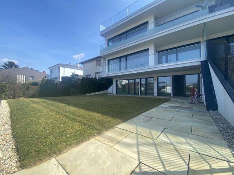 New luxury apartments in 13th district of Vienna with terraces and gardens. The following apartments are for sale: 63 m2 -158 m2. Prices 550.000 eur - 1.282.000 eur. The present apartment has an area of 79,34 m2, a terrace of 31,69, a garden of 133 m2, living room, 2 bedrooms, bathroom, toilet. High quality finishing and materials, furnished bathrooms.