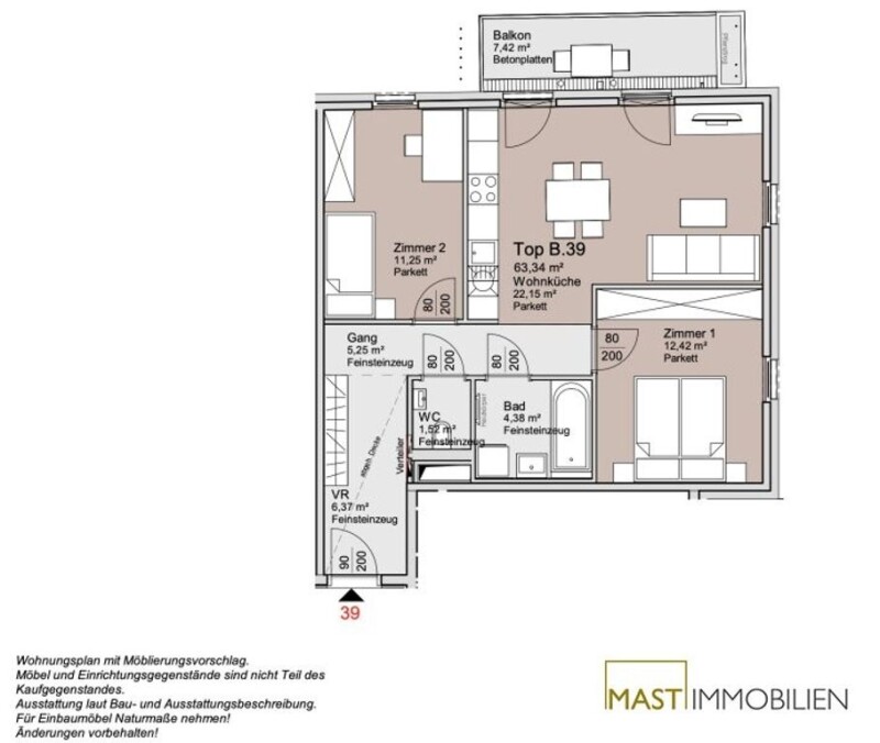 • Size: 63 m²