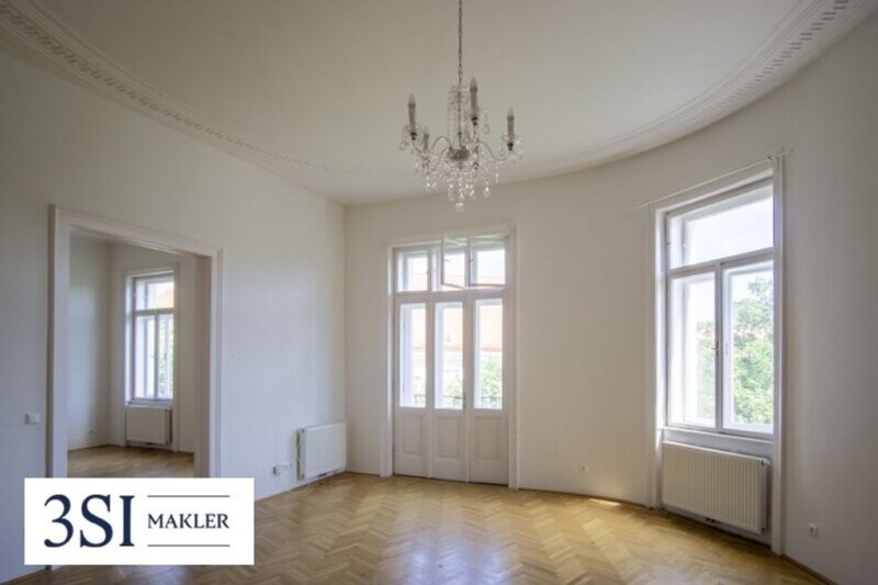Viennese elegance interpreted in a modern way At the prestigious address at Widerhoferplatz 1, exclusive condominiums offer sought-after homes for style-conscious cosmopolitans. While preserving the architectural details, the historic rooms with sizes ranging from 104 to 258 m² and 3 to 6 rooms are being completely renovated and restored to their full beauty. Balconies, terraces and a garden with an idyllic green view expand this precious piece of Viennese architectural history. Pleasantly quiet and yet in the midst of pulsating life, the stately Wilhelminian-era house impresses with a unique atmosphere. Special attention is paid to the flair and the feeling of living. In the luxury apartments, you can reside like the city's high society once did, with fantastic room heights of up to 3.65 meters. The perfectly coordinated transitions from yesterday to today, from historical to innovative and from inside to outside give the apartments a special effect. Everything that is offered here is incomparable in its generosity. The extraordinary can be experienced in every detail. Thanks to the elevator, ramps and double doors, the entire building is barrier-free. 11 underground parking spaces and 3 motorcycle parking spaces allow comfortable parking in the building's own underground car park on request: Lift platform (top / bottom) - EUR 65,000 / EUR 55,000 Motorcycle parking space - EUR 20,000 There are currently 2 additional manor apartments with 227 m² and 228 m² for sale. These can optionally be purchased in the same renovation style as the other first occupants. In each individual construction project, the heritage of old Viennese architecture has been preserved and at the same time space has been created for modern requirements. Historical elements such as French herringbone parquet, magnificent stucco moldings and traditional box windows have been lavishly restored and characterize the flair of the turn-of-the-century house. Underfloor heating in all rooms ensures a comfortable home even in the cold season. The bathrooms, embedded in the historic ambience, also offer exclusive standards - from free-standing bathtubs and double washbasins to large-format porcelain stoneware with a luxurious marble look. The traditional "Alt Wien" model with the WK3 security standard was chosen for the entrance doors. Of course, the apartments also meet all other requirements of modern technology and are equipped with an innovative smart home control system. With the Button-Intelligent-Living system, all functions from lighting to room temperature can be conveniently controlled from anywhere using an iPad - a wall bracket and charging station are already available. Elegant wall, floor and ceiling lights subtly set the scene for the spacious rooms. Central location - urban spirit in Alsergrund Anyone who lives in Alsergrund is in the middle of the doctors' and education district. The district is characterized by a long tradition of health and university services. The AKH (General Hospital), the St. Anna Children's Hospital and the Goldenes Kreuz Hospital are located nearby. The AKH's predecessor, the Old AKH, is also located in Alsergrund and is now a campus of the University of Vienna with numerous institutes. In the spacious, beautiful courtyard of the building complex there are numerous culinary hotspots and beautiful places to linger. In addition to education and medicine, the district also impresses with many cultural treasures. For example, the Volksoper on Währinger Straße. The city's second largest opera house provides entertaining evenings with operas, operettas, musicals and ballet. The magnificent Liechtenstein Park with its baroque garden palace invites you to relax in the green. The extraordinary symbiosis of nature, architecture and masterpieces of art history gives an insight into the princely world. The local amenities in the immediate vicinity leave nothing to be desired: just a few minutes' walk away there are excellent restaurants to choose from, such as the tapas restaurant Paco or the Café Weimar with classic Viennese cuisine. Thanks to the proximity to the lively Währinger Straße with numerous tram lines and the U6 Währinger Straße/Volksoper station, the historic center and the rest of the city can be easily reached in a short time. Staircase 2 - Top 13 This wonderfully divided manor house with a living space of just under 229 m² plus 3 balconies totaling 18.37 m² is divided up as follows: Entrance hall 6 rooms Guest toilet 2 bathrooms with toilet 3 balconies Additional costs For the sake of clarity, we would like to state that, unless stated otherwise in the offer, a commission will be charged in the event of a successful transaction which corresponds to the rates set out in the Real Estate Agents Ordinance BGBI. 262 and 297/1996 - that is 3% of the purchase price plus 20% VAT. This commission obligation also applies if you pass on the information provided to you to third parties. Finally, we would like to point out that we act as dual agents and that there is a close family/business relationship between 3SI Makler GmbH and the seller. The contract is drawn up and trust administration is bound to the law firm Dr. Michael Wagner A-1190 Vienna, Muthgasse 26. The costs are 1.5% of the purchase price plus 20% VAT as well as cash expenses and certification. The agent acts as a double agent. Infrastructure / Distances Health Doctor <100m Pharmacy <175m Clinic <250m Hospital <650m Children & Schools School <275m Kindergarten <200m University <75m High school <675m Local amenities Supermarket <125m Bakery <150m Shopping center <1,800m Other ATM <150m Bank <150m Post office <350m Police <150m Traffic Bus <150m Subway <200m Tram <150m Train station <525m Motorway connection <1,925m Information Distance as the crow flies / Source: OpenStreetMap Arne-Karlsson-Park / Old AKH / Embassy district.