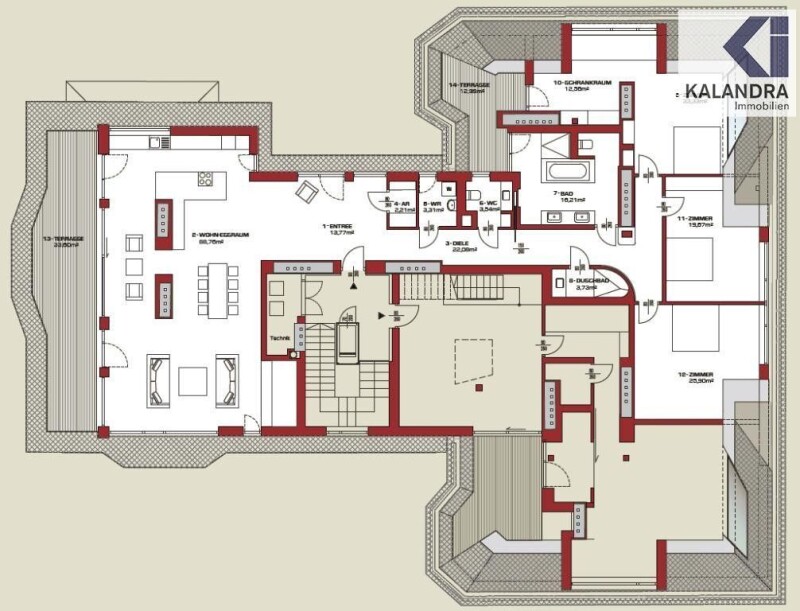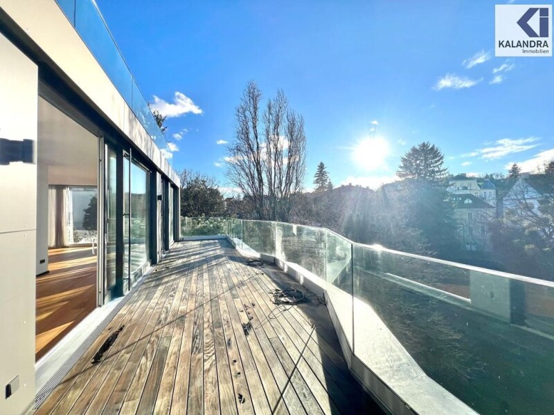 LUXURY PENTHOUSE in Gersthoferstrasse COTTAGE LOCATION Located in a beautiful green area of the 18th district were newly built on a century-interest villa the top floor with 2 residential units, as well as garage and parking spaces. Taking advantage of the development provisions for an increase of the existing building was carried out by 2 floors. Thus, in one of the most attractive in the 18th district of Vienna, in a palaisartigem building two luxurious and spacious penthouse apartments of the most prestigious category emerged. Space - Top 14: Living Space: 245.07 m² Terrrassenflächen: 47sqm large entree (ca.14m²), spacious living & dining room (approx 89m ²) with attached, open-designed kitchen and access to a southwest-facing terrace (ca.34m²) 3 bedrooms (20m ², 26m ² and 33m ²), one with access to a terrace (ca.13m²), walk-in closet (ca.13m²), large bathroom with tub, shower, double vanity and WC (ca.16m²), separate shower room, guest WC, utility room, storage room. Features: - all rooms parquet floor boards, - gas central heating condensing boiler and underfloor heating - bathrooms & WC: stoneware & Mosaikverfliesung - Exterior blinds (venetian blinds), - floor to ceiling doors, - SAT receiver, - air conditioning, - basement. The installation of a new lift, the individual floor levels of the building were opened. The open design of the two new homes offers a unique living experience and generosity. Floor to ceiling windows open the living room to the terrace and offer a view of the city and the surrounding old trees free. The facilities and the construction of two dwellings corresponds to the prime location. An energy performance certificate for this property is not yet available, this was requested by the owner and informed in writing of the new law (EAVG 2012).