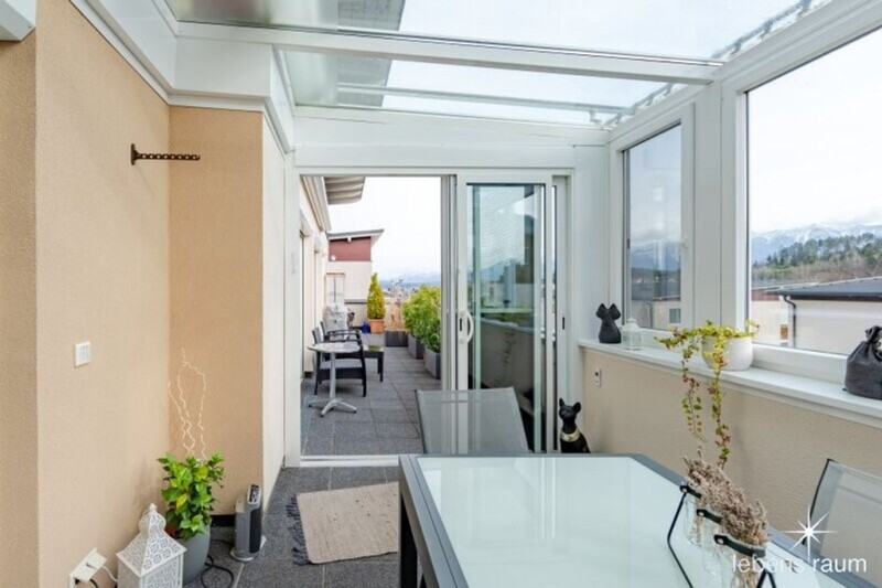 This apartment makes "dream living" a reality. The 5-room attic apartment impresses not only with its light-flooded rooms, not only with its spaciousness, but above all with the quality of the furnishings and wonderful views. Directly from the roof terrace you can see the mountains to the south, so that in addition to the Mittagskogel, the Dobratsch can also be seen. The Gerlitze is visible from the north-facing rooms, and the Mittagskogel and the surrounding mountains can be seen from the east-facing rooms. The living space of approx. 123m² offers 3 bedrooms as well as space for a beautiful, spacious living room, the separate but integrated high-quality kitchen, as well as a separate toilet, a spacious bathroom with a tub, shower and toilet. There is also space for storage and technology. The apartment is equipped with a high-quality bus system that offers all programming options. A loggia with an adjoining roof terrace (facing south) offers the opportunity to sit back comfortably with a book in both summer and winter and to end the day or enjoy the weekend accordingly. A large cellar with approx. 20m² and a very wide underground parking space complete the feel-good ambience. You are welcome to contact us for viewings. The region: Villach not only impresses with its beautiful nature and the resulting perfect leisure activities. Villach also has a lot to offer in the economic sector. Be it the flagship company Infineon, be it other medium-sized companies. The Mittagskogel and the Dobratsch are in direct view from the roof terrace, and the Gerlitze, visible to the north, is ideal for skiing and hiking. Airports: Klagenfurt: approx. 30 minutes by car, Ljubljana: approx. 1.5 hours by car, Salzburg: approx. 2 hours by car. From living space to living space - buy an apartment in Villach-Obere Fellach. The agent works as a double broker. Infrastructure / Distances Health Doctor <2,500m Pharmacy <1,000m Clinic <3,500m Hospital <4,000m Children & Schools School <500m Kindergarten <1,500m University <6,000m High school <6,000m Local supplies Supermarket <1,000m Bakery <1,000m Shopping center <1,500m Other ATM <1,500m Bank <1,500m Post office <1,000m Police <1,500m Traffic Bus <500m Motorway connection <2,000m Train station <3,500m Information Distance as the crow flies / Source: OpenStreetMap Villach center; Dobratsch; Gerlitze; Italy; Slovenia;.