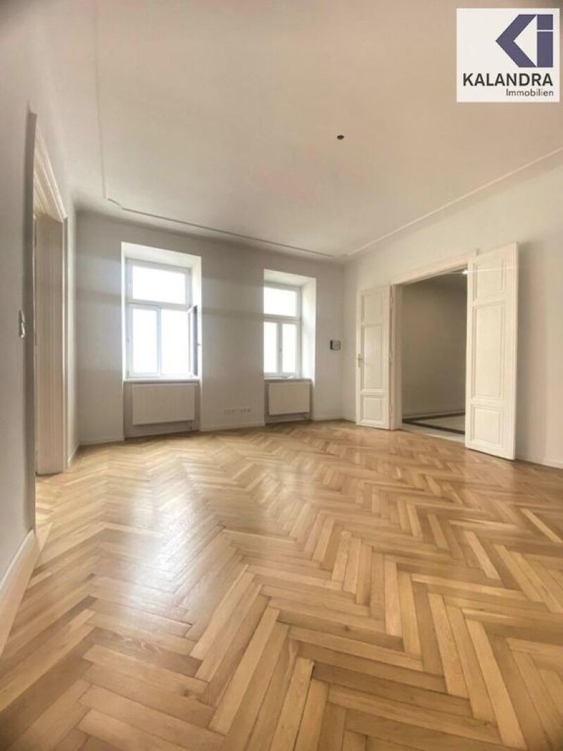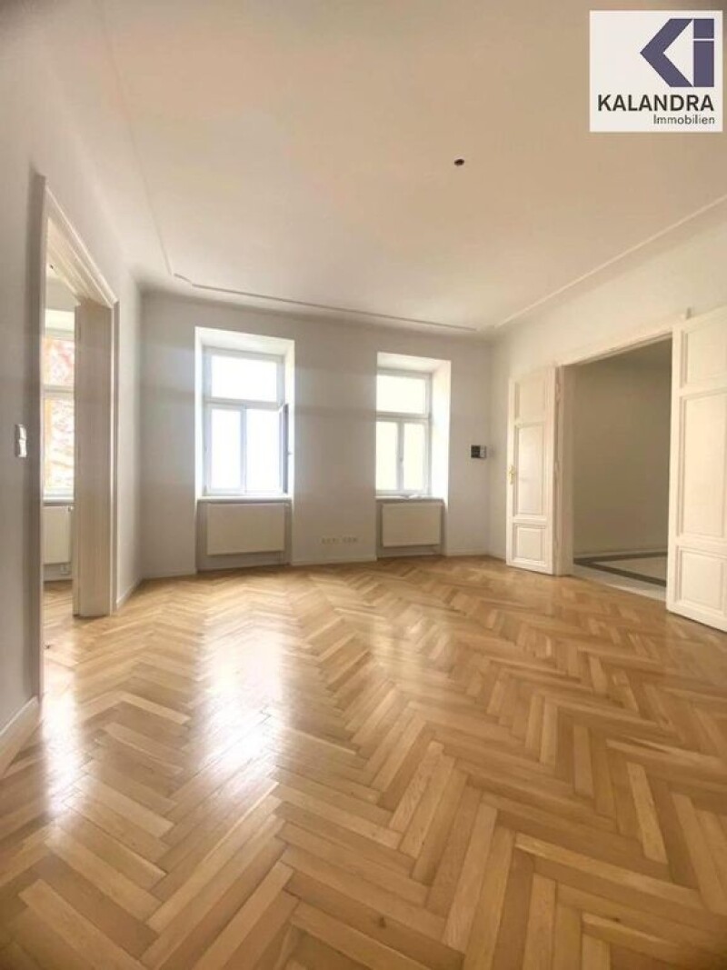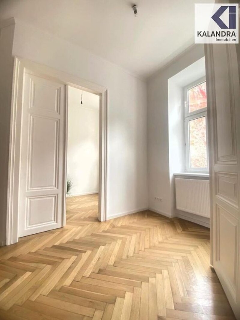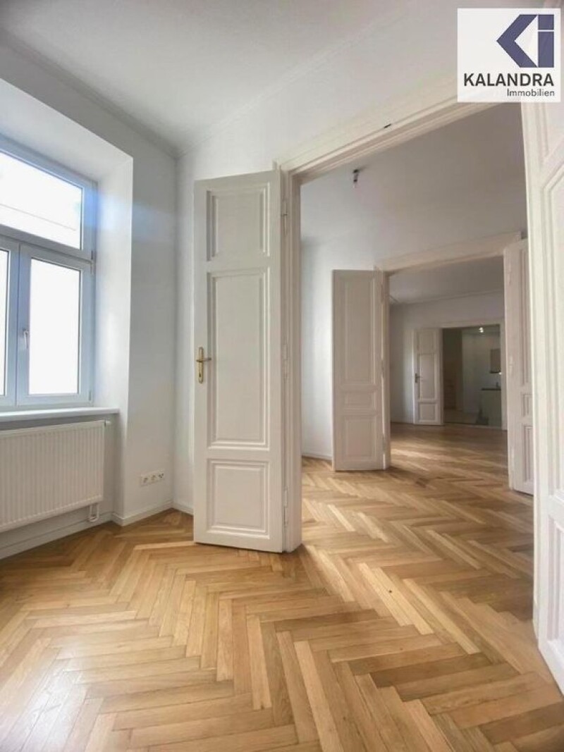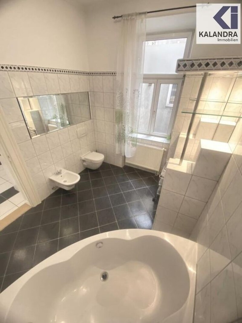 OLD BUILDING PROPERTY in a sunny, quiet courtyard locationThis renovated 3-room old building apartment is located on the 3rd floor of a well-kept and renovated turn-of-the-century house and faces south, facing an inner courtyard. Room layout:Entrance hall with storage room (possibility of installing a second toilet), leading into an extended entrance hall in which an open-plan kitchen-living room (approx. 15m²) is integrated, spacious, daylighted bathroom with corner bathtub, bidet & toilet (approx. 9.50m²), utility room with heating technology & washing machine connection (approx. 3.40m²), adjoining living room (approx. 26m²), then accessible in one line: a bedroom with walk-in closet (approx. 19m²) and then a work/children's room (approx. 7m²). Equipment:- the living rooms are all oriented towards a sunny courtyard - classic oak herringbone parquet flooring in the living rooms - double doors - entrance hall, sanitary rooms and kitchen-diner tiled in white/grey - kitchen and bathroom with suspended ceiling and low-voltage LED recessed spotlights - insulated glass composite windows - new fitted kitchen unit with electric stove/ceramic hob, extractor hood, dishwasher, upper and lower cabinets - security door bars and wall-mounted safe - a dry basement compartment is assigned to the apartment - gas floor heating Monthly costs: Operating costs: € 151.40 + 10% VAT Lift costs: € 31.41 + 10% VAT Repair reserve: € 80.53 Repair fund as of October 2023: Credit of € 25,379.-The apartment has been leased for 3 years since April 1, 2024 to a company that specializes in short-term rentals. rented commercially. The net rental income amounts to € 10,396.00 per year, which currently results in a return of 1.82%. A current energy certificate for the building has been requested from the owner and will be submitted later. 360° tour: in accordance with legal requirements: Heating requirement: 152.0 kWh/(m²a) Heating requirement class: C Final energy requirement: kWh/(m²·a).