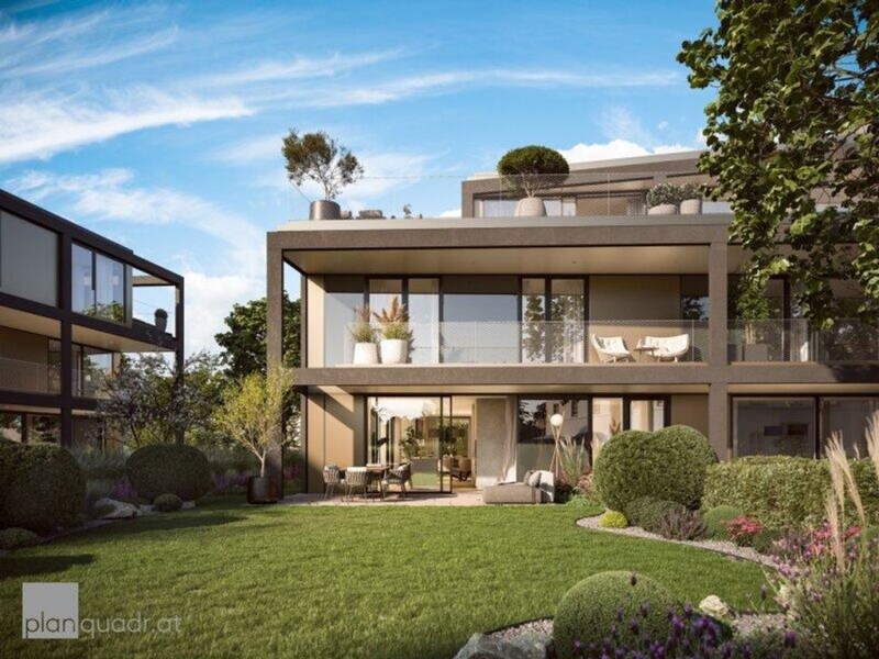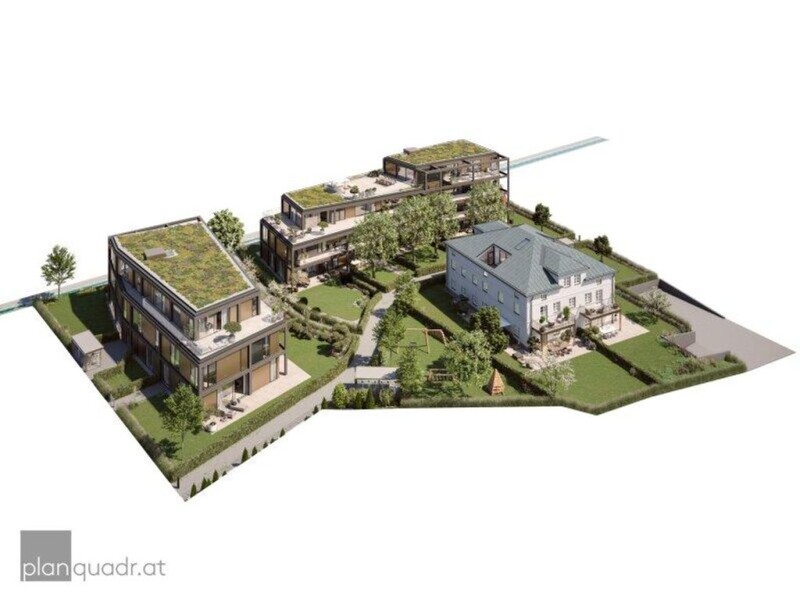 Ganshof, Maxglan Riedenburg - Modern living with history Since it was built in 1815, the Ganshof in Salzburg Maxglan-Riedenburg has stood for joie de vivre, conviviality and relaxation. The inn, which was built on the former Ganshofgut, was a fixture of social life; generations learned to swim and enjoyed their free time in the attached bathing establishment. Over the course of time, the inn and spa were closed, but the special location, quality and atmosphere of the place near Salzburg's old town were preserved. Now Planquadr.at is transforming the historic property into a high-quality place to live that combines the tried and tested with the new. With sensitive renovation, attention to detail and sophisticated architecture, an ensemble is being created consisting of the historic Ganshof and two new buildings directly on the idyllic Ganshofbach. Completion of the total of 24 apartments is planned for 2026. Key data & highlights Premium location in Maxglan-Riedenburg Stylish garden apartments, terrace apartments & penthouses Sizes from 75 to 309 m2 (can also be combined) High-quality, customizable equipment Heat pump/photovoltaics (new building: HWB 21/22, historic Ganshof: HWB 85) Gardens directly on the Ganshofbach XL -Underground car park Bicycle parking spaces with electricity connection Modern building technology - preparation for “Smart Home” solutions More information and the entire range of apartments You can get more information and the entire range of apartments directly from the developer Planquadr.at on +43 662 840870 and on the project website: www.ganshof .at AT THE TOP - INDIVIDUALLY PLANNABLE EXTRA CLASS PENTHOUSE This ultra-modern, light-flooded penthouse apartment offers an elegant 4-room layout, a spacious 127 m2 terrace and an additional 30 m2 balcony. You can enjoy a fantastic view from the apartment, and there is the possibility of creating a private pool on the terrace. The highest position in the complex offers maximum privacy. Inside, the spacious, open kitchen-living-dining area is the centerpiece; it offers plenty of space and a unique ambience. Floor-to-ceiling windows bathe the room in natural light and provide a fantastic view of the surrounding area. The master bedroom of this penthouse suite offers a dressing area and a luxurious ensuite bathroom on over 30m2. Two additional children's rooms share an exclusively equipped bathroom and guarantee the highest level of living comfort for the whole family. There is also a guest toilet and a spacious cloakroom area available. The apartment is air-conditioned and prepared for the integration of modern smart home systems, so alarm systems can also be implemented. The planning of the apartment can currently still be individualized; our interior specialists are happy to help you with this. THE EQUIPMENT The bathrooms are equipped with elegant fittings from Dornbracht, Keuco and Fantini, the ceramics come from Villeroy & Boch, Laufen, Toto and Duravit. The elegant floor-level showers in all-glass design with rain shower and towel radiator create the highest level of comfort. Underfloor heating with individual room control, the ventilation system and external, electrically controllable sun protection ensure the best room climate. Large triple-glazed windows and glass elements create a light-filled ambience. Elegant oak parquet floors (optionally laid in a herringbone pattern) and modern, large-format porcelain stoneware ensure a stylish living atmosphere that harmonizes with a wide variety of living styles. The parking spaces in the underground car park are equipped with power connections and preparations for electric car charging stations. PERSONAL ADVICE We look forward to hearing from you on +43 662 840 870 or home@planquadr.at. The sale takes place directly from the developer. Note on images & visualizations: The views and 3D visualizations shown may differ from the actual version and may contain special equipment. BEST LOCATION IN MAXGLAN-RIEDENBURG. ALL THE BEST VERY CLOSE. First-class restaurants, shops, schools and kindergartens can be reached quickly and safely on foot. A leisurely walk into Salzburg's historic old town takes around 15 minutes. The A1 motorway and Salzburg Airport are only a few kilometers away and ensure optimal connections.
